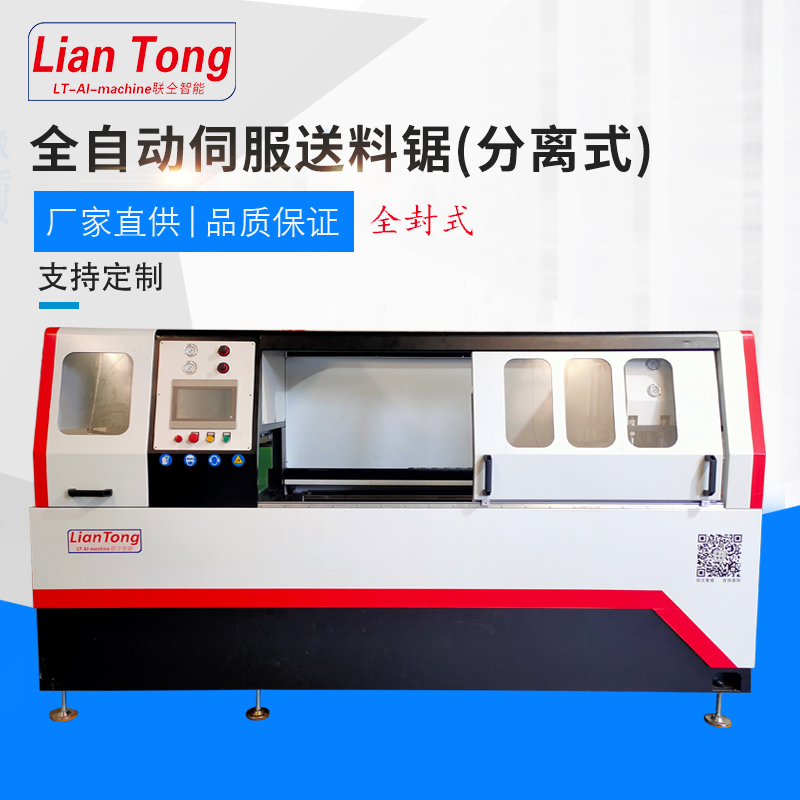 大型分離式高精度數(shù)控送料切割鋸,適合各種工業(yè)鋁型材的高精度加工,采用高速電機直接安裝鋸片,進品絲桿和直線導(dǎo)軌傳動,進口伺服電機驅(qū)動送料,結(jié)構(gòu)穩(wěn)定,精度高,切割完成后,鋸臺分離后再退刀,保證刀片回刀時,不接觸工作臺兩邊材料,確保加工好的材料表面沒有毛刺和刀紋。